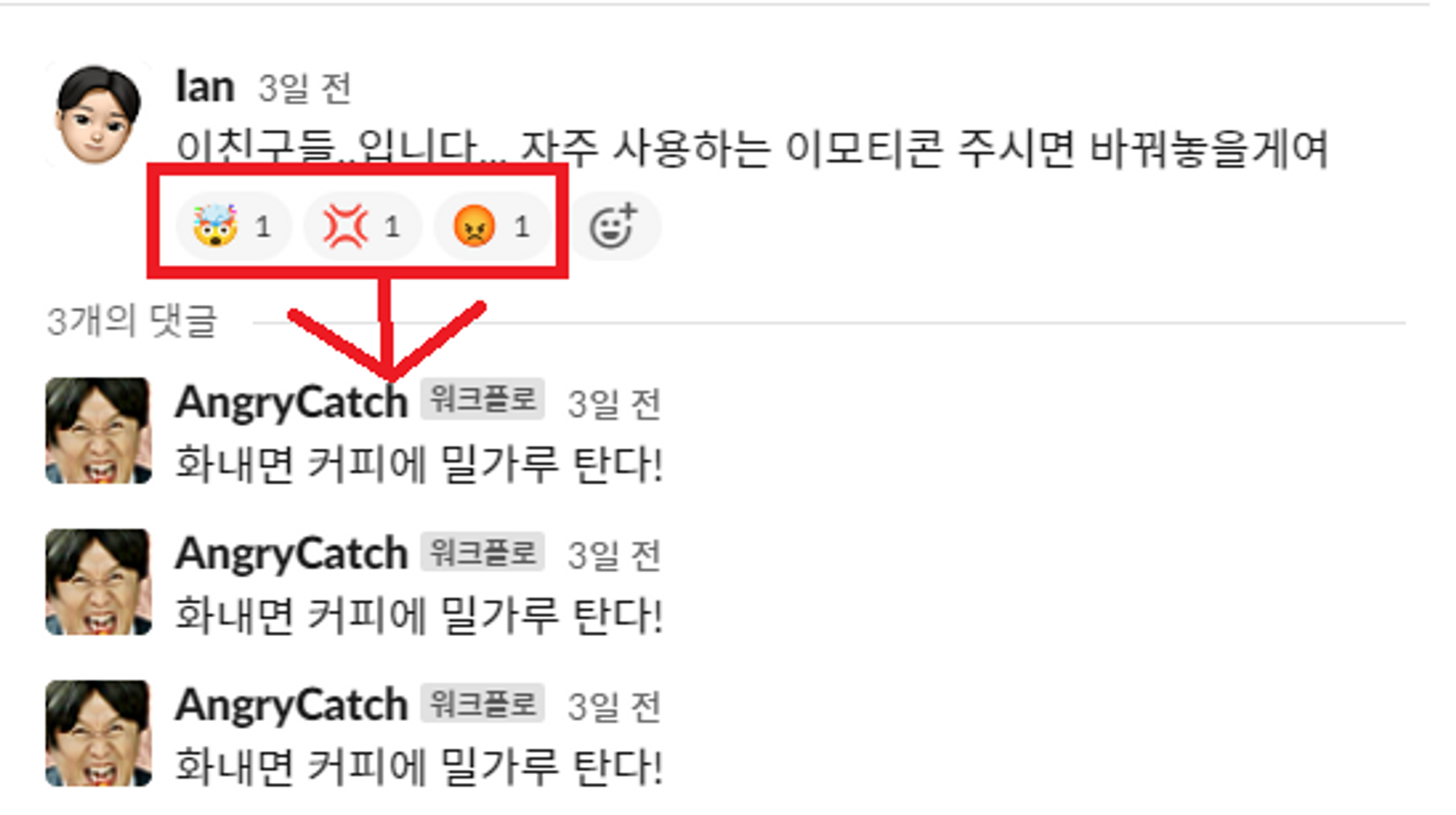 화내는 이모티콘을 인식하며, 스레드로 남깁니다!
