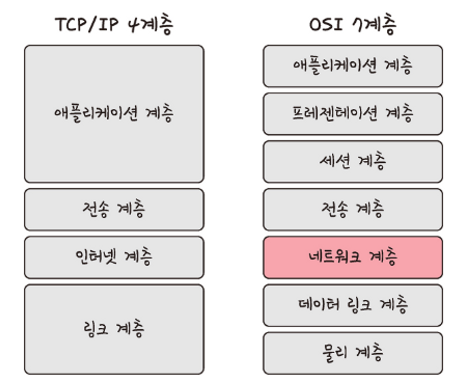 - 실제로 사용되는 인터넷 표준은 TCP/IP 4계층
