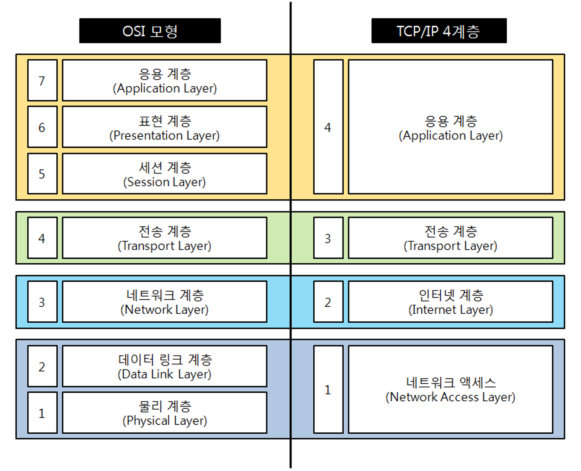 - 네트워킹 범위에 따라 4개, 7개의 추상화 계층으로 제공함