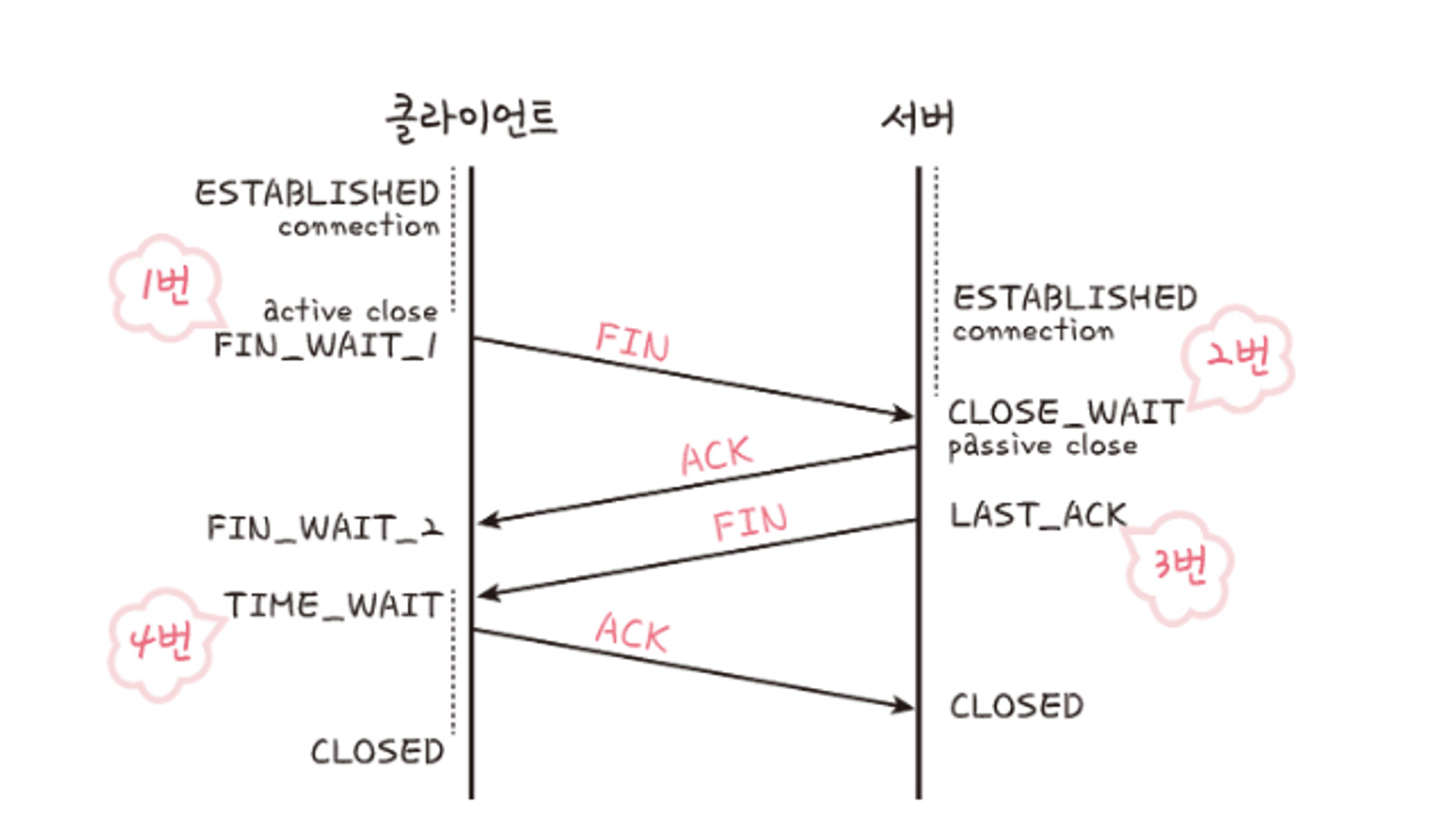 - 연결을 바로 끊어 버리면 데이터, 네트워크의 무결성이 보장되지 않음